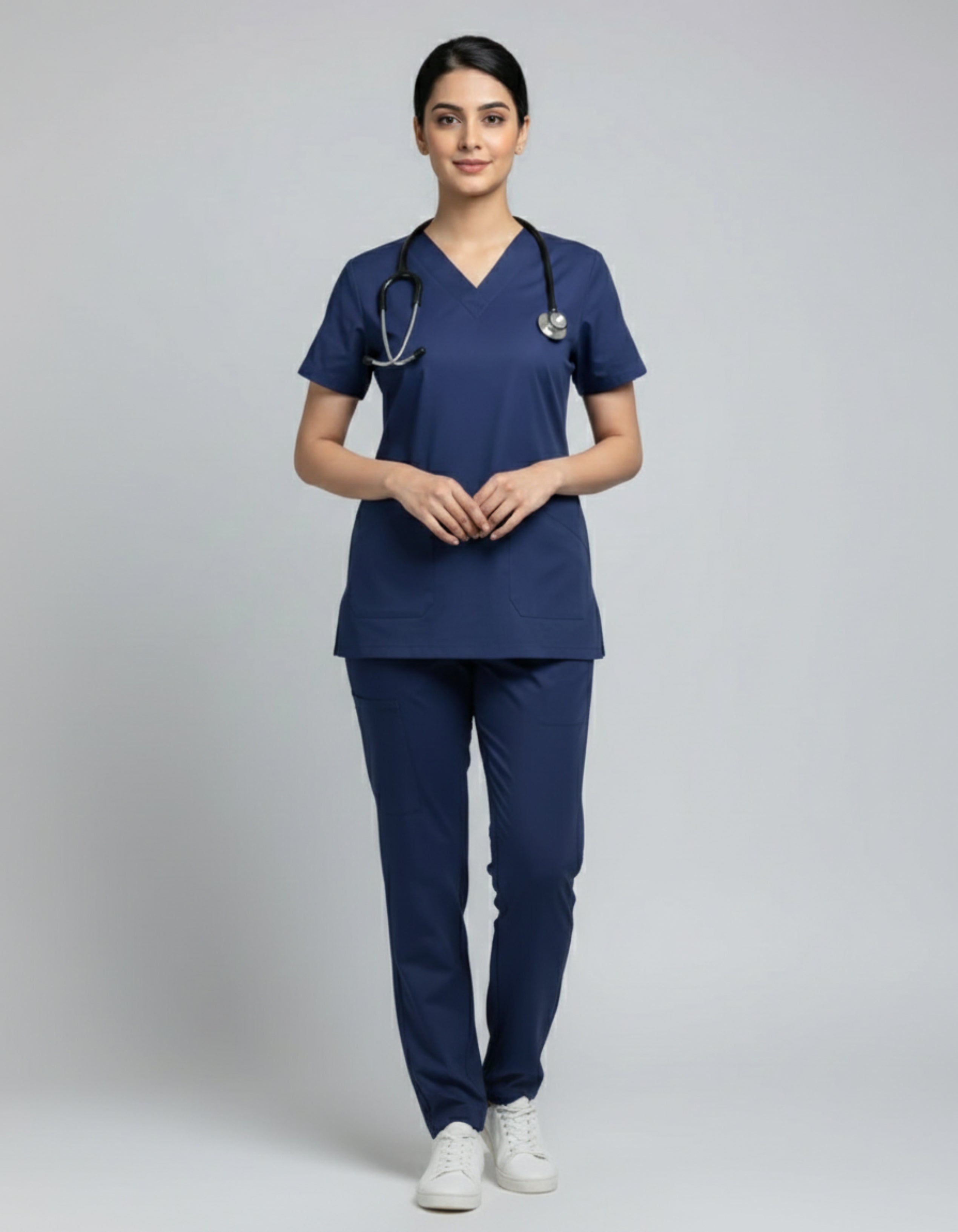 Work in comfort and confidence with this essential cotton dark blue scrub set. Made from soft, breathable cotton, it keeps you cool and comfortable during long shifts while maintaining a professional, trustworthy look. The versatile design ensures you feel polished and at ease throughout your busiest days.